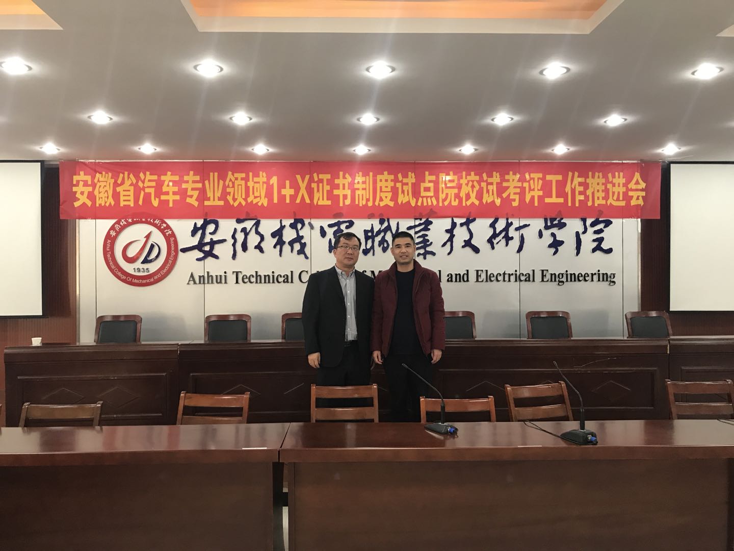 2019年12月9日,在安徽省舉辦的汽車專業(yè)領(lǐng)域1+X證書考評(píng)工作推進(jìn)會(huì)上,公司領(lǐng)導(dǎo)王總與職業(yè)教育培訓(xùn)評(píng)價(jià)組織北京中車行高新技術(shù)有限公司王勇秘書長進(jìn)行了坦誠的交流。王勇秘書長和公司王總各自詳細(xì)介紹了,汽車后市場(chǎng)維修技術(shù)人員和汽車前市場(chǎng)汽車制造技術(shù)人員的考評(píng)標(biāo)準(zhǔn)和學(xué)習(xí)內(nèi)容,雙方都愿意各自優(yōu)勢(shì)互補(bǔ),進(jìn)一步深度開展合作。