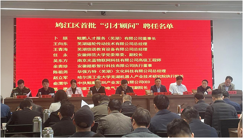 蕪湖市鳩江區(qū)區(qū)委書記方忠,區(qū)委副書記、區(qū)長黃萬勇等黨政領(lǐng)導(dǎo)參加會議,現(xiàn)場頒發(fā)聘書。